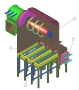 The furnace can either be build up from refractory material or boiler water walls. The freeboard temperature is controlled by secondary air which further enhances the burn out of small fuel particles and volatile matter. The long residence time in the furnace ensures complete burn out. For difficult fuels, a horizontal cyclone can be added at the exit of the furnace for the recirculation of unburned, where a secondary air venturi sucks the hot gases from the cyclone skimmer which are so blown back into the furnace for secondary combustion. This TWINFLUID fluidised bed system is protected by international patents in many countries and a number of industrial size reference plant are already in operation. |