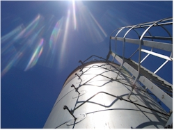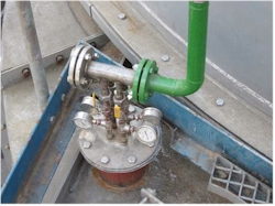 The large cyclone shown on this picture operates at 850 °C and only a small pressure loss is available. The cyclone separates 99 % of all particulate greater 100 µm at a total pressure loss of only 2 mbar.